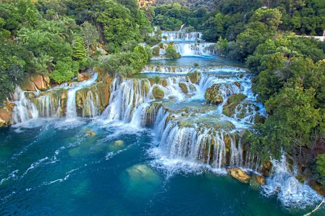 Durch canyonartige Schluchten bahnt sich die Krka, Namensgeberin des Nationalparks, ihren Weg zum Meer. Sieben imposante Wasserfälle stürzen in die Tiefe. Der längste ist der Skradinski Buk. Er gönnt sich berauschende 800 Meter Flussstrecke, um über 17 Stufen 45 Meter hinabzusteigen. 30 mittelalterliche Wassermühlen liegen im Park, 860 Pflanzen- und 220 Tierarten sind hier heimisch.